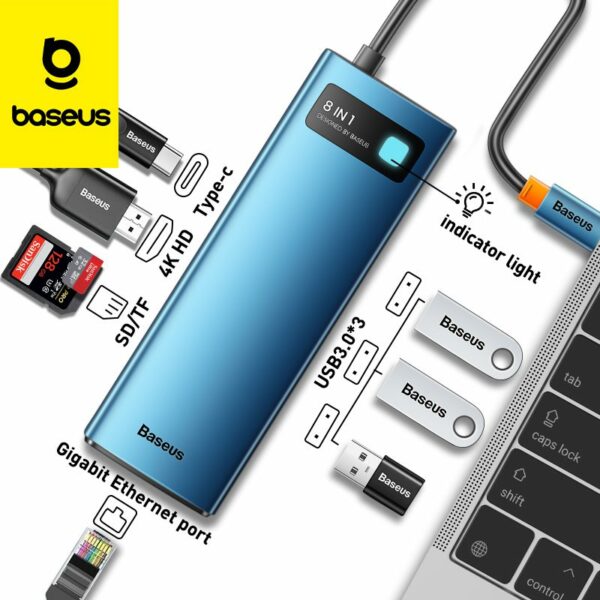 | Hub multifonctionnel 9 en 1 Baseus CAHUB-CU0G Votre ordinateur portable ne dispose pas de suffisamment de ports ? Vous souhaitez augmenter ses capacités ? C’est plus facile qu’il n’y paraît ! Le concentrateur multifonctionnel 9 en 1 de Baseus est équipé de 3 ports USB 3.0, 1 port USB-C, 1 HDMI, 1 port VGA et 1 port Ethernet. Il possède également des emplacements pour cartes SD et TF. Il permet des transferts de fichiers rapides avec une vitesse allant jusqu’à 5 Gbps et vous permet d’afficher des images en qualité jusqu’à 4K. Il prend également en charge la charge rapide de 100 W DP sur le port USB-C. Il se distingue également par sa dissipation thermique incroyablement efficace et sa compatibilité étendue. Vous constaterez qu’il vaut la peine d’utiliser un port d’ordinateur pour en gagner jusqu’à 9 à la place ! Charge rapide pour vos appareils Profitez d’un chargement rapide de plusieurs de vos appareils simultanément. Le hub prend en charge les protocoles DP et BC1.2. Qu’est-ce que cela signifie en pratique ? Avec son aide, vous pouvez charger instantanément votre ordinateur portable jusqu’à 100 W – vous n’avez plus à craindre qu’il refuse soudainement de fonctionner. En même temps, vous pouvez également connecter votre téléphone ou votre tablette à l’alimentation. Avec Baseus, tout l’équipement dont vous avez besoin sera toujours prêt à fonctionner ! Affichez l’image de votre ordinateur portable sur un maximum de 2 écrans supplémentaires Vous aimez regarder des films sur grand écran ? Ou peut-être que vous donnez souvent des conférences ou des présentations ? Le hub multifonctionnel de Baseus vous sera certainement utile ! Le produit a été équipé de ports HDMI et VGA. Cela vous permet d’afficher sur 2 écrans supplémentaires. Dupliquez l’image sur tous les appareils ou affichez des diapositives ou des enregistrements sur 2 écrans, prenez des notes, modifiez les paramètres ou travaillez sur votre ordinateur portable – les possibilités sont vraiment énormes ! Profitez d’une qualité d’image supérieure Qu’est-ce qui rend le hub Baseus si bon pour regarder un film ou tenir une conférence ? Le port HDMI vous permet d’afficher une excellente qualité d’image 4K/30 Hz, ce qui vous permet de profiter de la richesse incroyable des détails et des couleurs nettes et naturelles. Regardez facilement le prochain épisode de votre série préférée sur grand écran, ou montrez à votre public une présentation intéressante pleine de diapositives attrayantes et claires. Transfert de fichiers rapide Vous vous retrouvez fréquemment à transférer des fichiers entre appareils ? Vous n’aimez pas attendre trop longtemps pour le transfert de données ? Baseus vous aidera à résoudre des problèmes similaires ! Les ports USB 3.0 vous permettent de transférer des photos, des films ou des documents avec une vitesse allant jusqu’à 5 Gbit/s. Désormais, même les fichiers les plus volumineux trouveront leur destination en un rien de temps ! Utilisez facilement les cartes SD et TF Ce n’est pas la fin de vos options de stockage et de transfert de fichiers. Le hub est équipé de 2 emplacements pour cartes mémoire – SD et TF. Leur capacité maximale prise en charge peut atteindre 2 To, ce qui vous donne suffisamment d’espace pour enregistrer toutes les données dont vous avez besoin. Vous en voulez plus ? L’appareil vous permet de transférer des fichiers entre la carte mémoire et votre ordinateur à une vitesse allant jusqu’à 60 Mo/s, ce qui vous permet d’organiser facilement vos photos et vidéos et de gagner du temps ! Bénéficiez d’un accès Internet rapide Vous aimez jouer à des jeux en ligne ? Regarder des vidéos sur YouTube est un excellent divertissement pour vous ? Ou peut-être avez-vous souvent besoin d’un accès à Internet au travail ? Le hub Baseus sera également utile dans de telles situations ! Le port Ethernet prend en charge des taux de transfert de données allant jusqu’à 1000/100/10 Mbps, ce qui vous permet de profiter d’une connexion fluide, rapide et stable. Exploitez tout le potentiel de votre téléphone Vous avez un téléphone qui prend en charge OTG ? Nous avons d’excellentes nouvelles pour vous ! Le hub est compatible avec des appareils similaires et vous permet d’augmenter considérablement leurs capacités. Par exemple, vous pouvez afficher l’image de votre smartphone sur grand écran et regarder des films HD confortablement. Vous souhaitez transférer des fichiers entre votre téléphone et une clé USB ? Aucun problème ! Il suffit de connecter les appareils au hub et de copier toutes les données dont vous avez besoin. Vous pouvez toujours l’avoir sous la main Le produit a été conçu de manière à pouvoir satisfaire les besoins les plus divers des utilisateurs. Il attire l’attention avec un design élégant et moderne, et les détails orange lui confèrent un caractère original. Les informations sur l’état de l’appareil vous fourniront un indicateur bleu. Fabriqué en alliage d’aluminium, le boîtier est extrêmement durable et résistant à l’usure, tout en assurant une dissipation thermique efficace. De plus, le hub est si léger et portable que vous pouvez toujours l’avoir avec vous ! Compatible avec vos appareils Vous êtes préoccupé par d’éventuels problèmes de compatibilité ? Ne le sois pas ! Le hub fonctionne parfaitement avec Windows, macOS, iPadOS et d’autres systèmes. Il peut gérer la plupart des appareils équipés d’un port USB-C de marques populaires telles que Apple, HP, Lenovo, Acer, Razer, Samsung, Huawei et Honor. Vous n’avez pas non plus à vous soucier d’une configuration compliquée. Le système Plug&Play simplifie le branchement du hub. Dites adieu à l’installation de pilotes supplémentaires ! SpécificationMarque Baseus Nom Station d’accueil HUB multifonctionnelle de type C 9 e